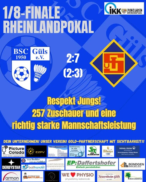 Die Spieler und Fans wünschen der TuS Koblenz weiterhin viel Erfolg im Wettbewerb und drücken die Daumen. Denn wer Güls schlägt, kann am Ende eigentlich nur den Pokal holen.