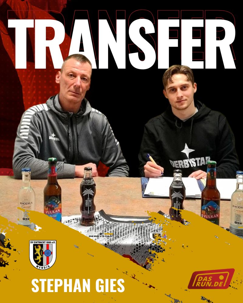 Stephan Gies hat einen Wechsel zum SV Eintracht Mendig vollzogen. Der talentierte Mittelfeldspieler, der in den vergangenen zweieinhalb Jahren beim TuS Oberwinter in der Bezirksliga spielte, wird nun in der Rheinlandliga für die Eintracht auflaufen.